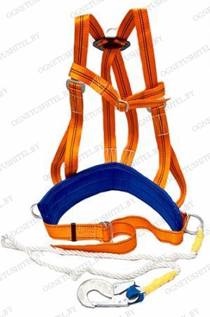 Комплектация: ремень с пряжкой, подкладка под ремень (кушак), наплечные лямки, элементы крепления – два металлические D-кольца на ремне привязи и одно на спине, строп из полиамидного каната с монтажным карабином